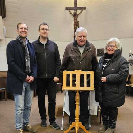 Im Anschluss ehrte der Pfarrgemeinderat den verdienten Musiker mit einem ganz besonderen Geschenk: Ein graviertes, persönliches Notenpult, das seine jahrelange Hingabe für die Kirche würdigt.