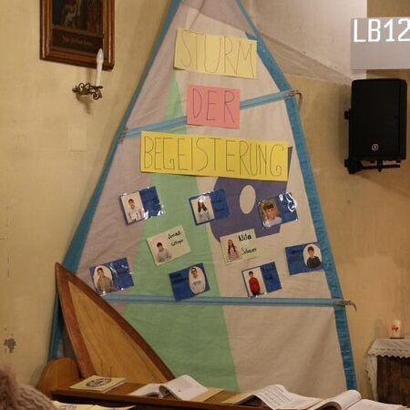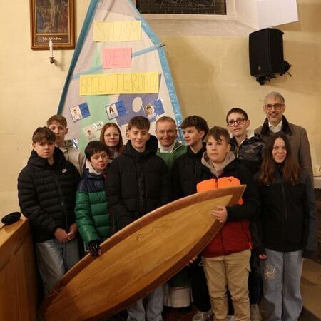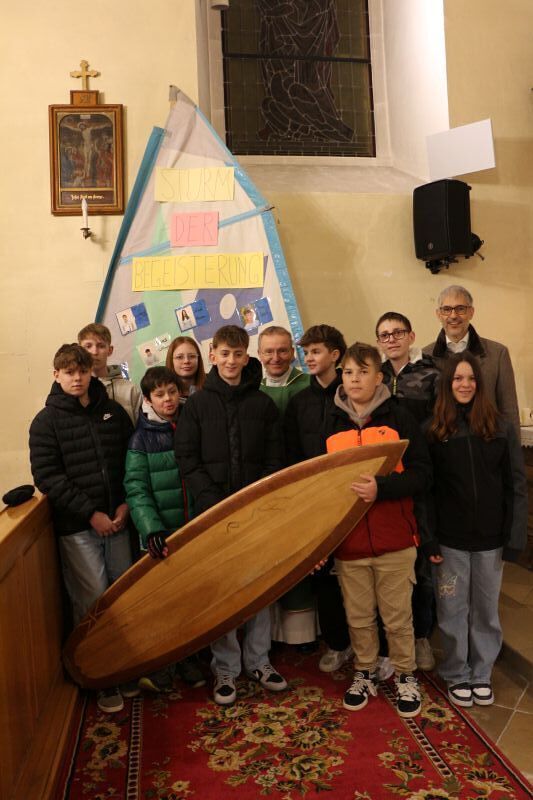 2025 steht die Firmung unter dem Motto "Der heilige Geist kommt als Sturm der Begeisterung und treibt das Segel unseres Lebens voran. Mit ihm können wir auf den Wellen des Lebens surfen".