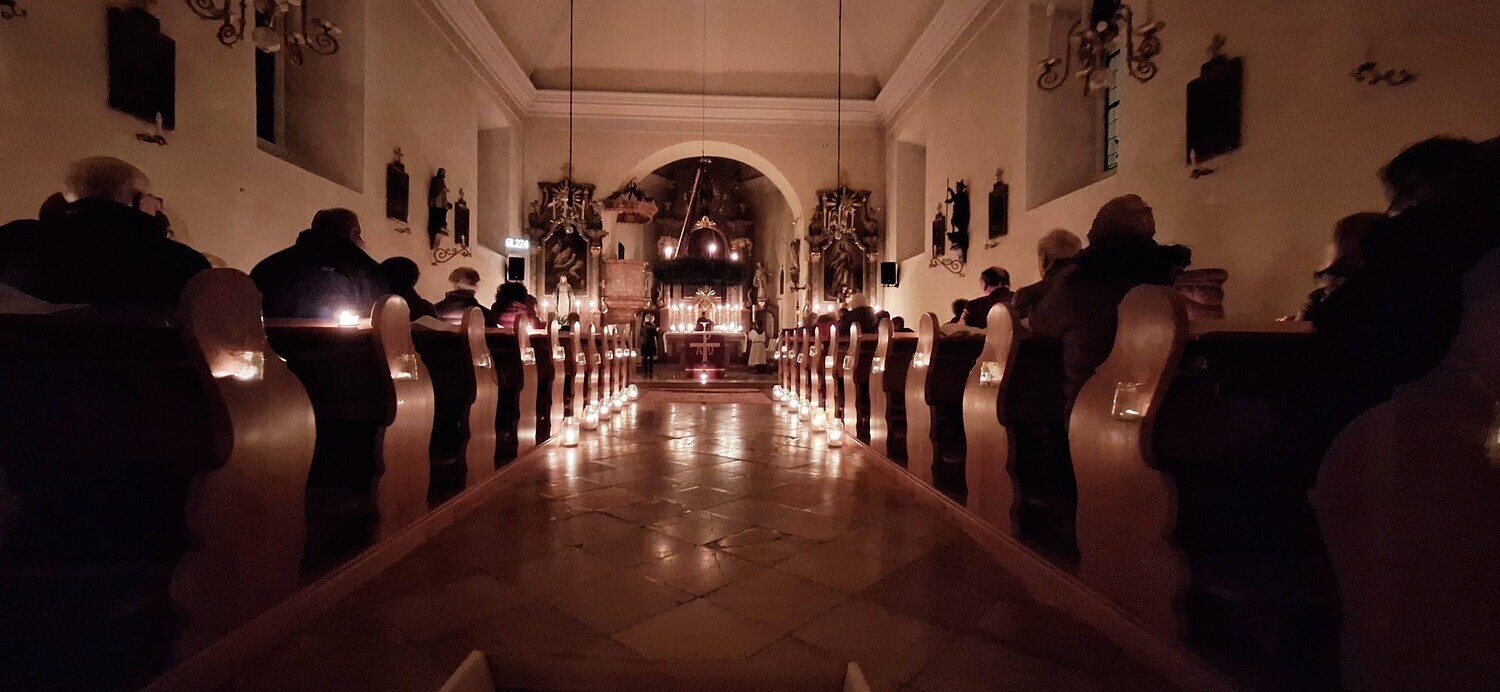 Die Kerzen und mitgebrachten Laternen sorgten für eine besondere Stimmung in der Kirche.