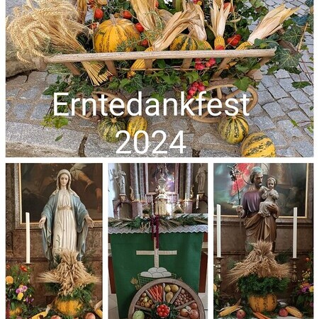 Die Gaben der Kinder wurden mit einem Dankeschön für die reiche Ernte am Altar niedergelegt. Musikalisch wurde die Messe von der Gitarrengruppe gestaltet. Die Altäre waren hervorragend und elegant mit den Früchten von Garten und Acker geschmückt.
